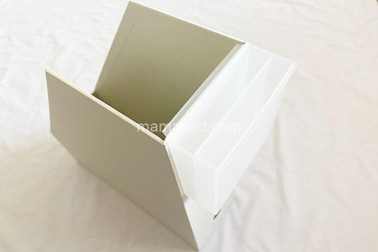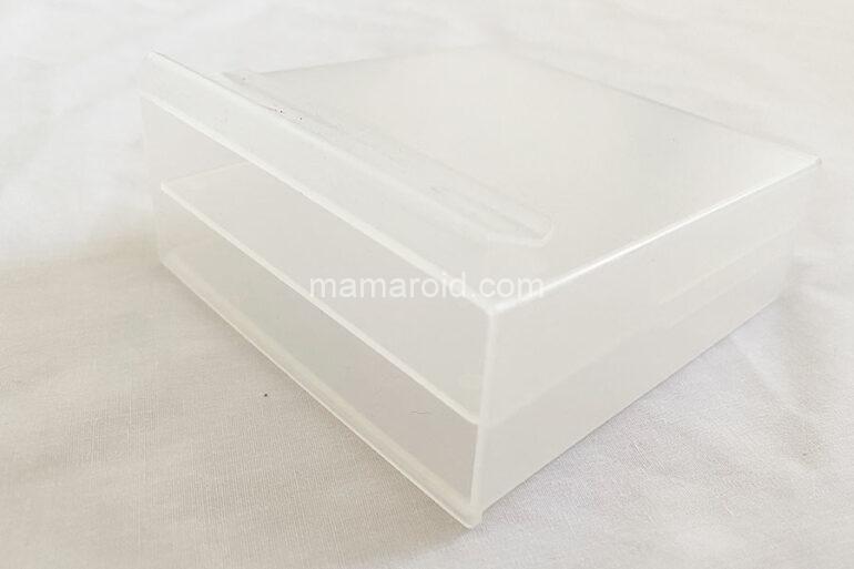ワイドボックスのサイズは9.5✖️4.4✖️9cm。素材はポリプロピレンでスルガ(株)の商品です。