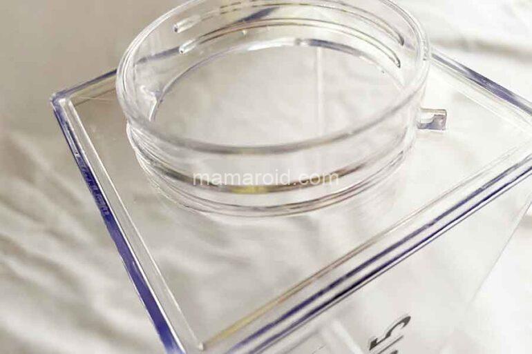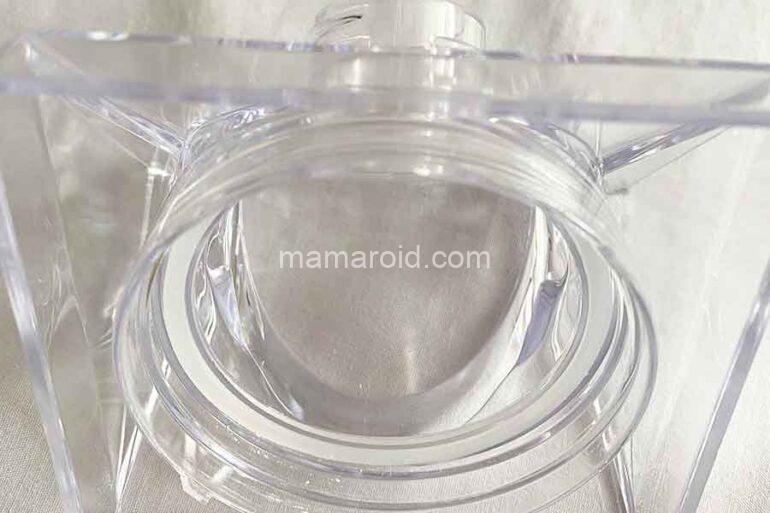 フタにはパッキンがついているので、フツーに使っている分にはこぼれたりする心配はありませんが、密閉容器ではないので、横置きや逆さにするのはNGとなっています。