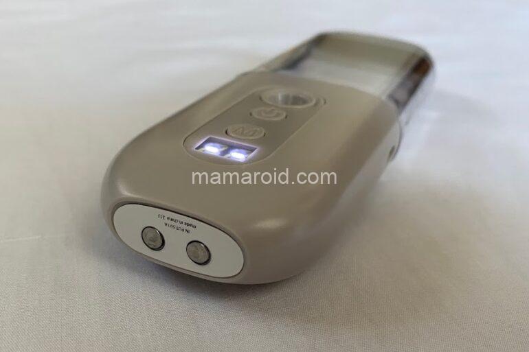 昨年のフェイススチーマーよりも大きいサイズですが,手のひらに乗る大きさ。