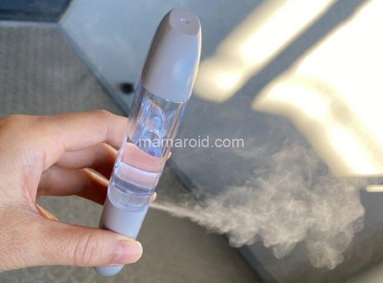 3COINS「フェイススチーマー」のミストを噴射すると,結構な量が出てきます。
