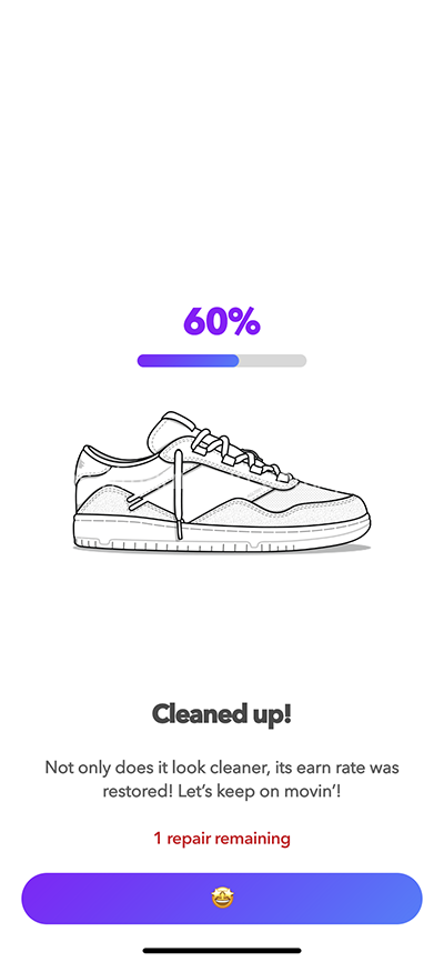 Aglet(アグレット)の貯め方は、歩くこと。1000歩ごとに通貨や新しいスニーカーが受け取れます。