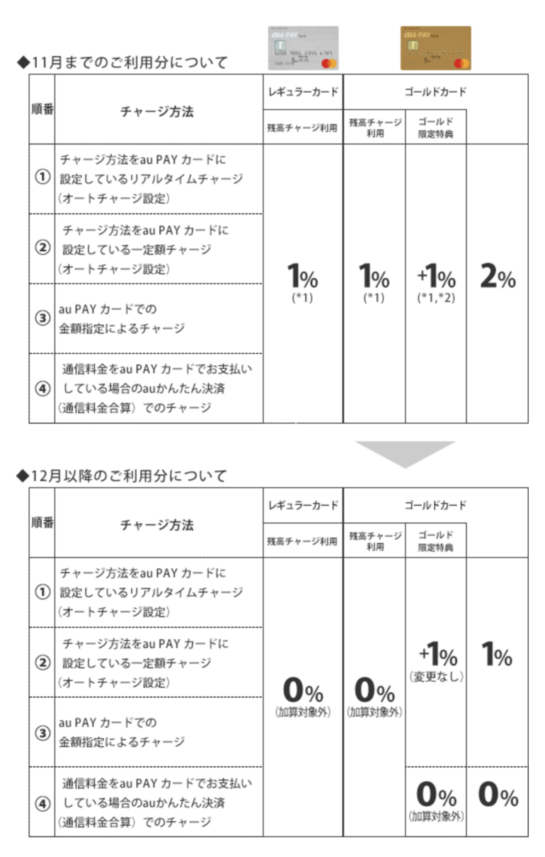 「au PAY カード」から「au PAY残高」へのチャージを考えている人は、今月末までにおこなったほうが良さそうですよ。