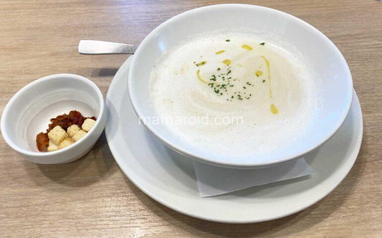 - スープ:カリフラワースープ(カリカリパンチェッタとクルトン添え)