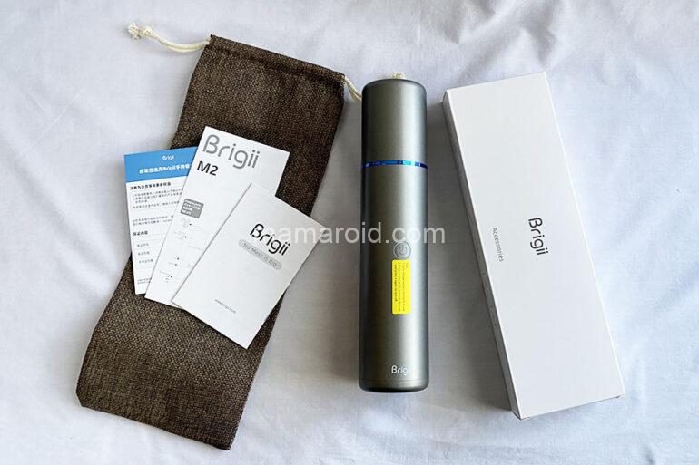 「Brigii M2」のパッケージには説明書とアタッチメントセット、収納袋が同封されています。