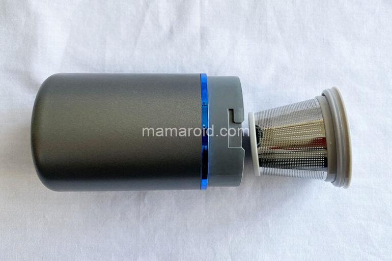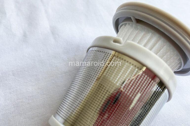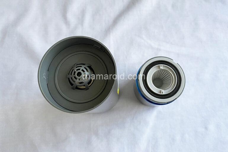 中にはHEPAフィルターとステンレスフィルターのコンビネーションフィルターが。これはネジ式ではなく、カパっとはまっているだけなで引き出すように取り出します。