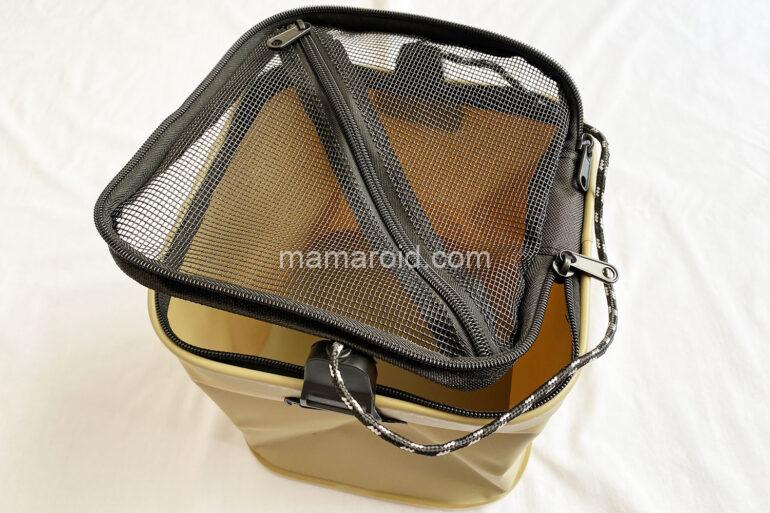 特徴は2種類のファスナーがあるメッシュのフタがついているところ。