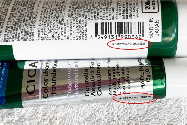 ともに、「CICA」の特徴である「ツボクサエキス」が入っているようです。
