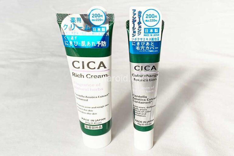 ダイソーに登場した「CICA」シリーズの中から、「リッチクリームD」「カラーチェンジンジファンデーションD」を購入しました。