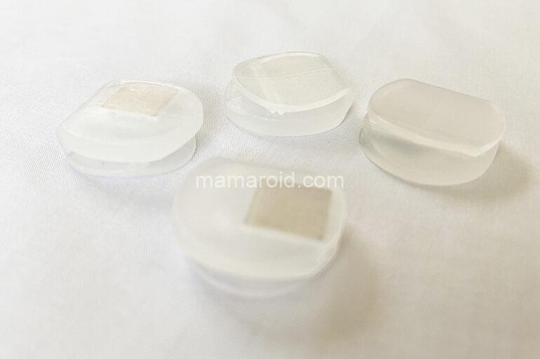 上部画像の上部分についている丸いものがダイソーのもので、下についている四角いものがセリアのもの。