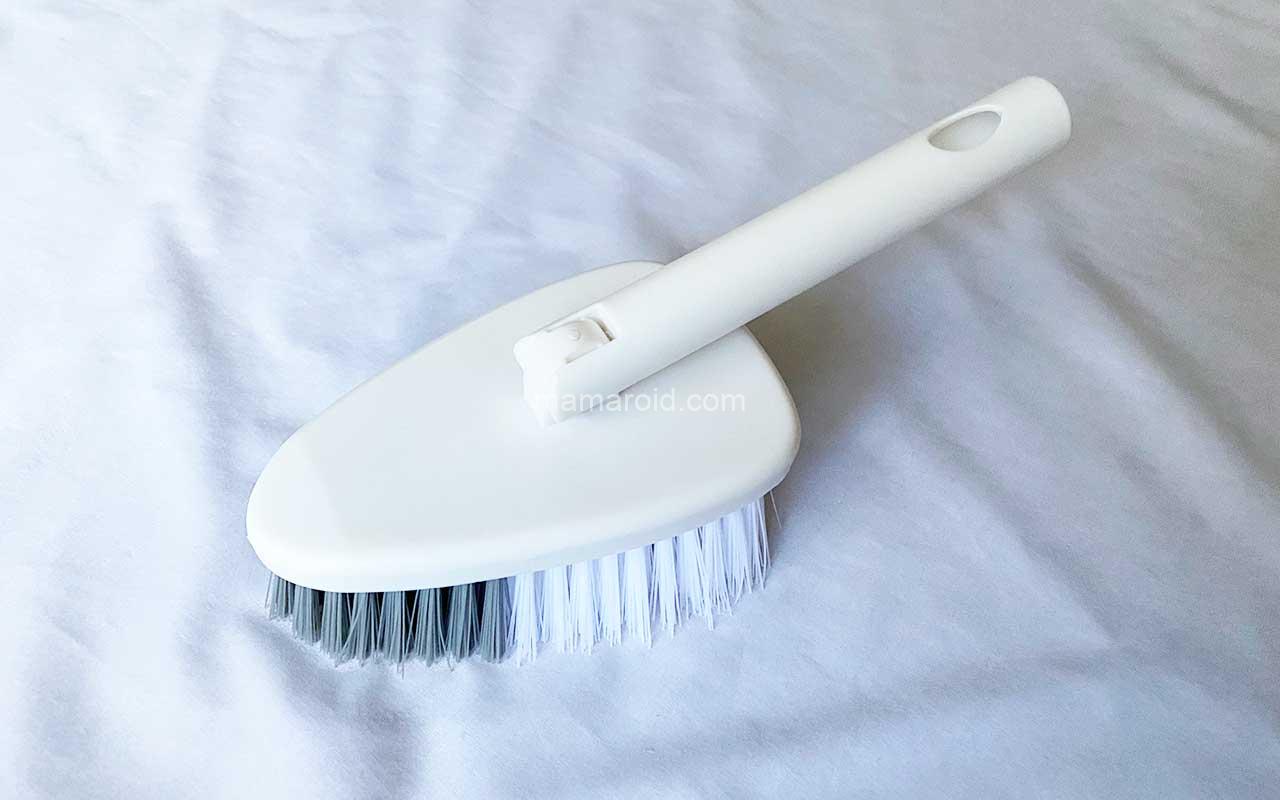 ということで、ダイソーの「三角ヘッド バスブラシ」は、日常の風呂掃除から大掃除まで対応可能な万能アイテムでとても良さげに見えましたが、NGでした。