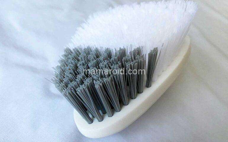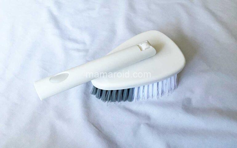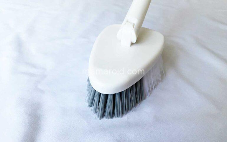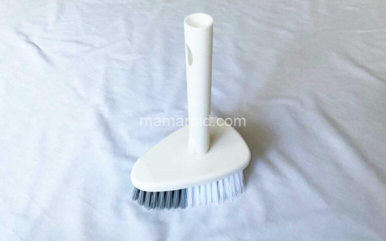 せっかくの隅っこ掃除に使える三角ヘッド。いざ使おうと思ったら、手前に来ちゃうんですね。力を入れなければいいんですけど、ブラシって、たいていゴシゴシ擦りたいから、使うグッズじゃないんですかね。