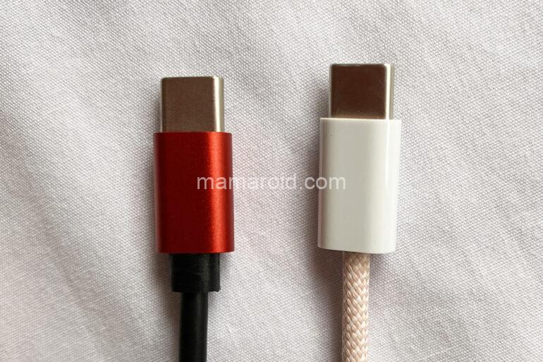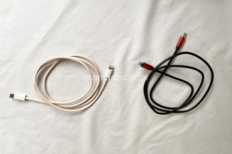 長さはともに1mとありますが、若干ダイソーのケーブルの方が短い印象。ただ、真っ直ぐに伸びないので正確に計測はできていません。