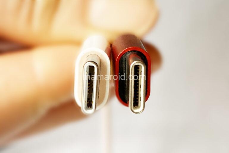 上記写真の左がMACの付属品、純正のケーブルで、右がダイソーのもの。