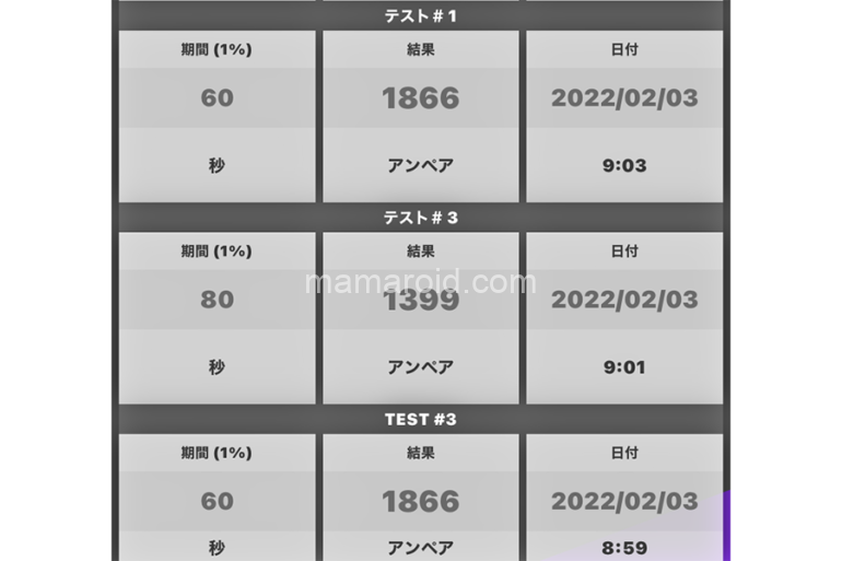 計測したのが無料のスマホアプリを使用してなので、目安数値とおもったほうがいいかもしれません。