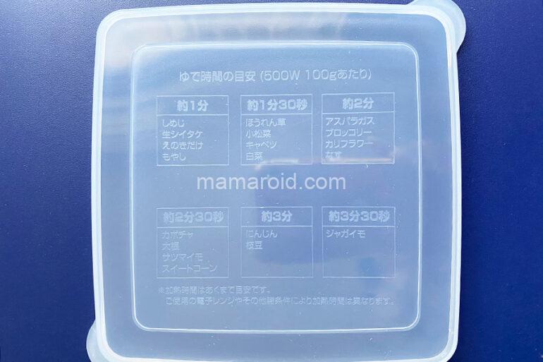 蓋には調理時間の目安が書かれています。
