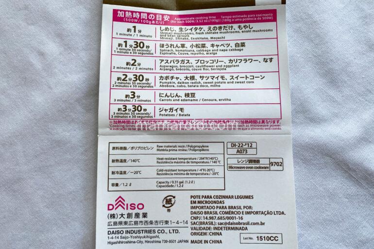 ダイソーの電子レンジで調理できる「ヘルシー温野菜」がリニューアルされていました。
