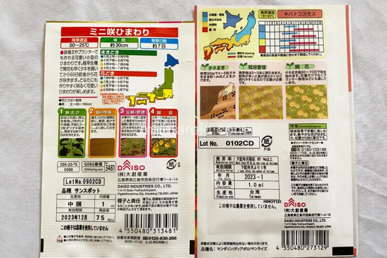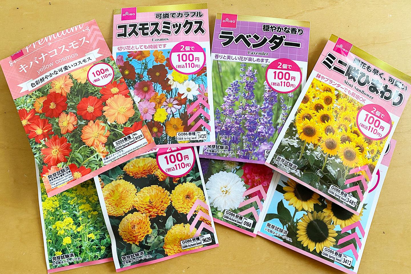 ダイソーに春蒔きの種が入荷していたので、購入してきました。