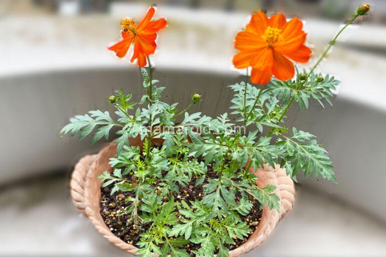 キバナコスモスの花が咲き始めました〜。100均の花の種ってどうよ、と心配になる方もいらっしゃると思いますので、その後を載せておきます。