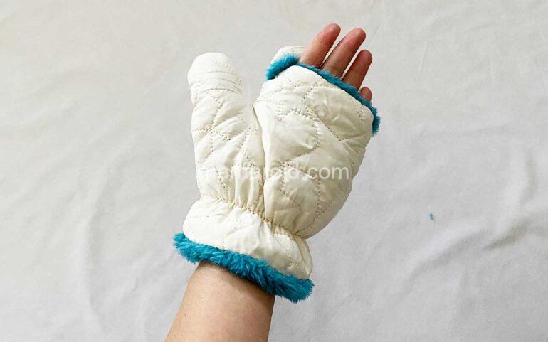 2WAYミトン型手袋は330円。手袋にしては、リーズナブル。汚れても惜しげのない白色ベースのミトンを購入しました。