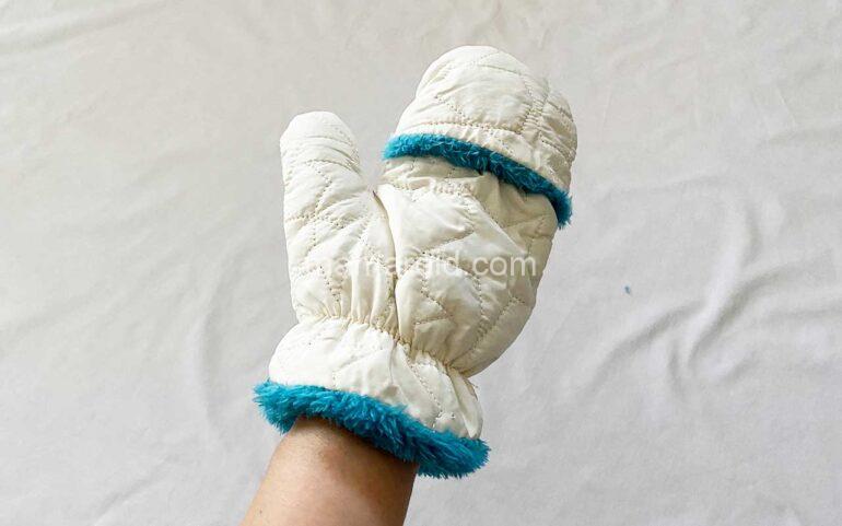 DAISO×TGCのミトンはキイルテキング生地。表地も中綿もポリエステル100%です。