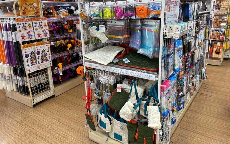 キルト素材のバッグやポーチ、ワイヤレスイヤホンやスマホケースなどが登場しています。価格は110円から1,100円。