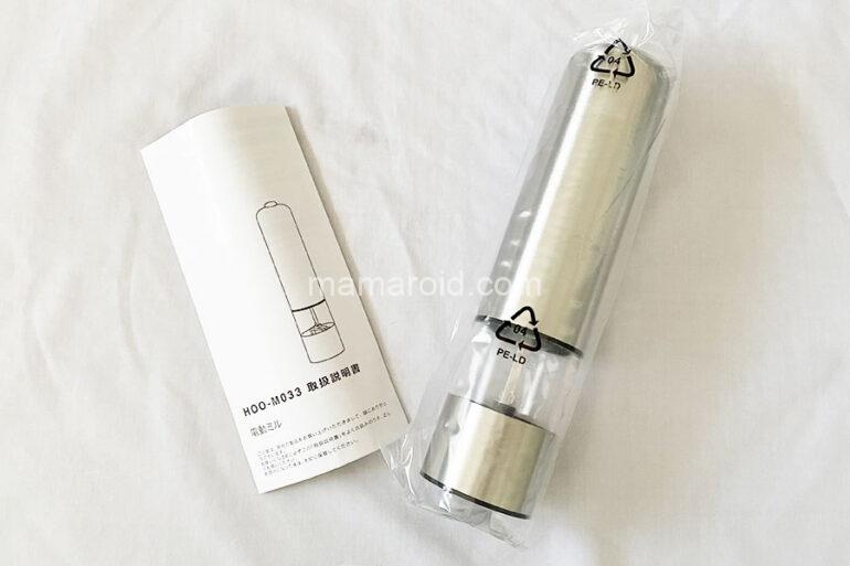 Amazonで販売しているこちらの電動ミルは底部分にライトがついて2本セットです。