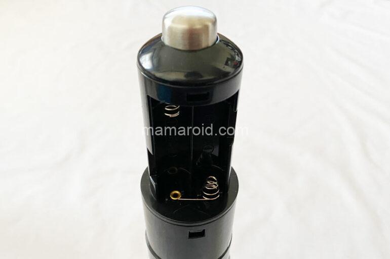 電動ミルはまずトップカバーを外すと電池を入れる箇所が現れます。