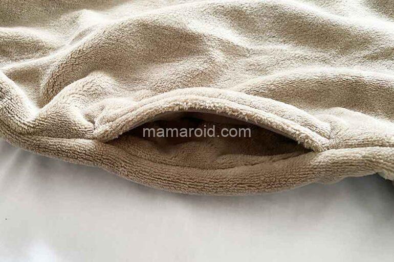 でも、まさしく毛布のようにして、このまま寝るのもありかも。肩が冷えるのを防いでくれます。