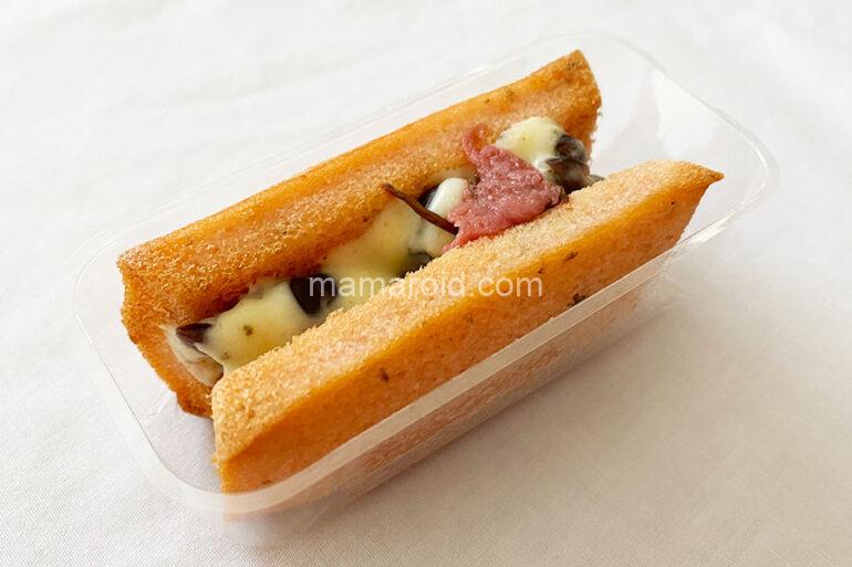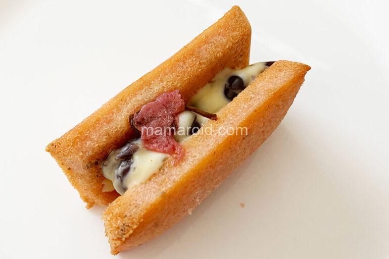 中にサンドされているのは、桜葉の塩漬けとかのこを練り込んだクリーム。小豆入りクリームは食感も感じられます。