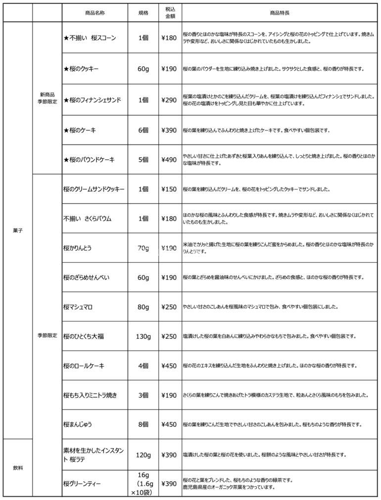 無印良品 桜のお菓子・飲料シリーズ