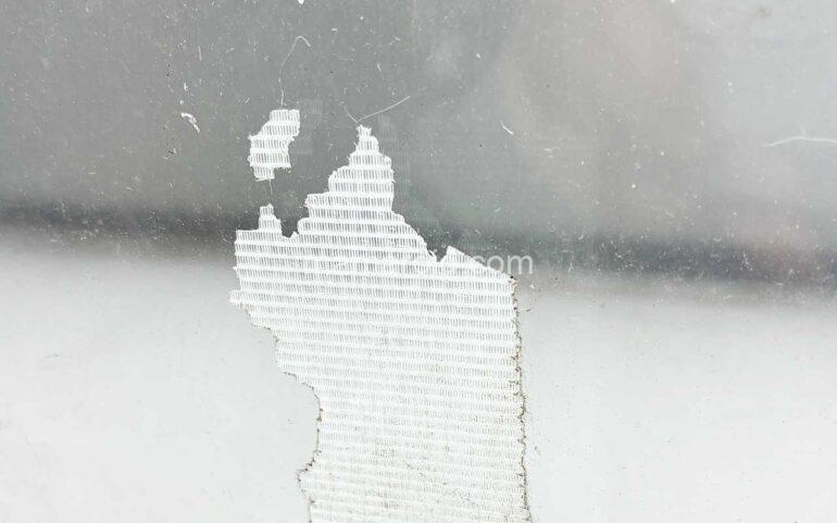 年数が経つと、シールやテープがボロボロに劣化して、引っ張ることが難しい。表面だけが少しめくれているところから開始しても、剥がれるのはほんのわずか。で、肝心の粘着部分はしっかりとガラスにくっついたままです。