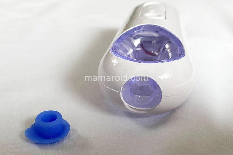 水は頭の部分のシリコーンのフタを外して入れます。容量は25ml。