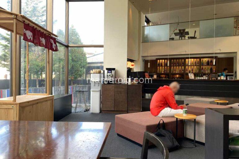フロントでチェックインし、鍵と夕食券、朝食券をもらいましたが、15時まで部屋には入れません。30分ぐらいなら入れてくれるかな〜なんてちょっぴり期待していましたが、時間厳禁。15時になるまで、ブックスカフェで時間をつぶしました。コーヒーやお茶は、飲み放題です。
