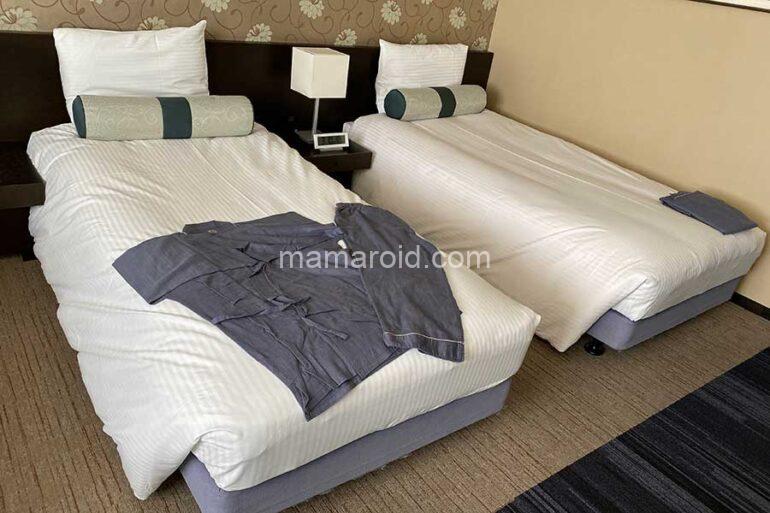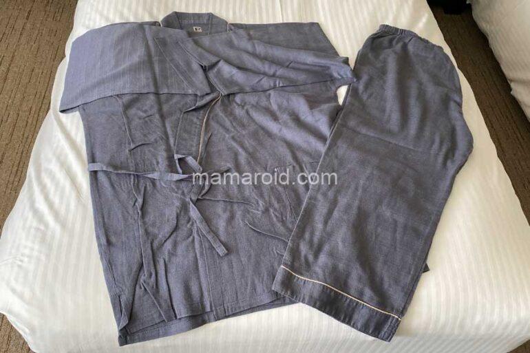 フリーサイズで、男女同じ。サイズが異なるもの希望するなら1Fのロビーに各サイズの部屋着がおいてあるので、自分でピックアップできます。