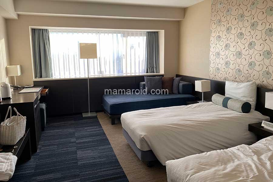 15時になり部屋に入ると、むっとする暑さ。全館統一温度に設定されているらしく、部屋の温度調節ができません。空調を消して、しばらく廊下のドアをわずかに開けてました(廊下は涼しい‥)。
