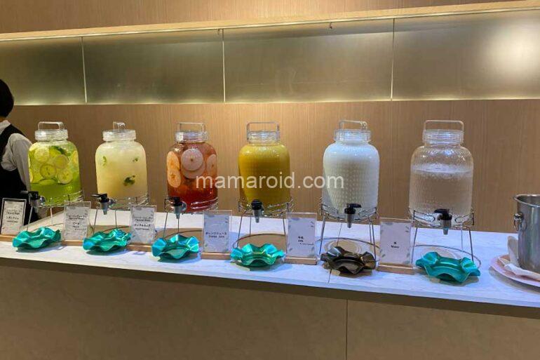 ジュースバー。左3つがオリジナルフルーツ水で、どれも美味しかったです。