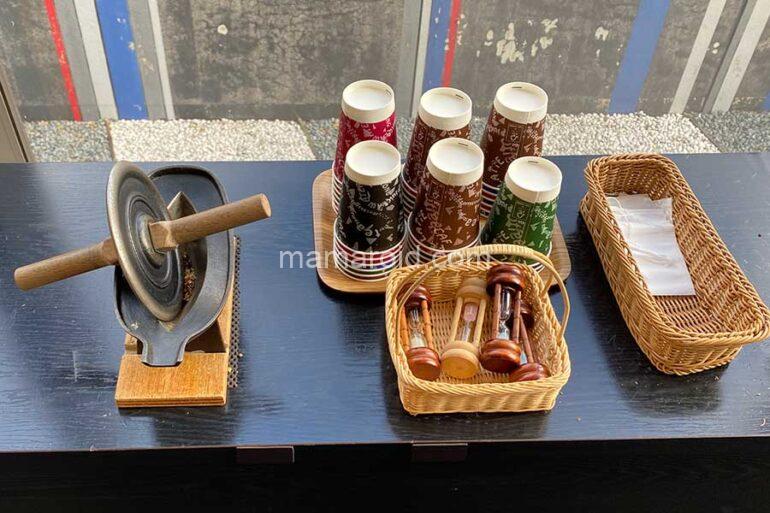 朝7時からブックカフェの一角では薬草を自分でブレンドしてお茶にできる「薬研こしぇる茶」コーナーが登場します。