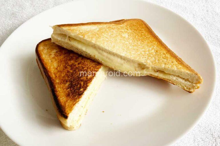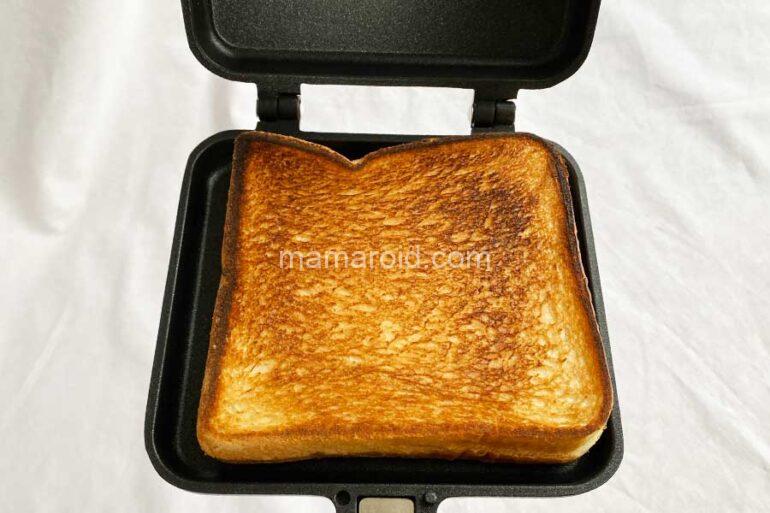 パンの耳は圧着しませんが、外側カリッ、内側ふんわり、中のチーズのとろけ具合もよく、美味しいホットサンドができました。