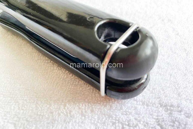これをハンドル部分についている留め具で固定してフタを閉めます。