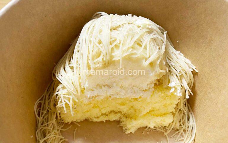 今回私がいただいたのは、「笠間和栗0.5ミリ 極細モンブラン」のスポンジタイプのテイクアウトバージョン。価格は880円(税込)です。このモンブランは、独自の絞り機を使って0.5ミリという極細に絞られた栗ペーストが特徴。