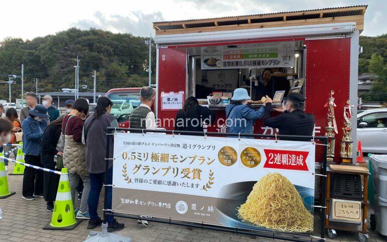 先日、ゴルフの帰り道、以前から気になっていた「笠間和栗のモンブラン 栗の絲(いと)」を購入するために少々遠回りして行ってみました。場所は茨城県笠間市の「道の駅かさま」。連日大人気の赤いキッチンカーで提供され、多くに人で賑わっていました。