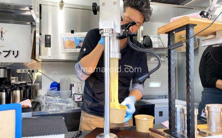 向かい側にあったキッチンカー「加水0%モンブランシェイク」にも長蛇の列ができていました。
