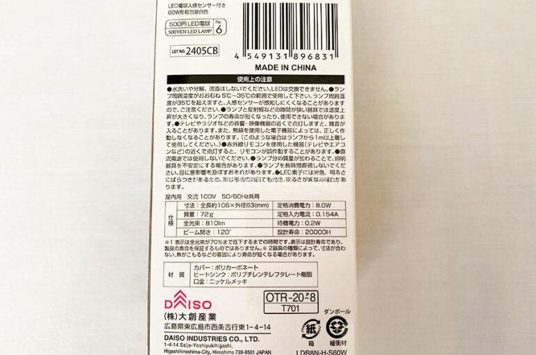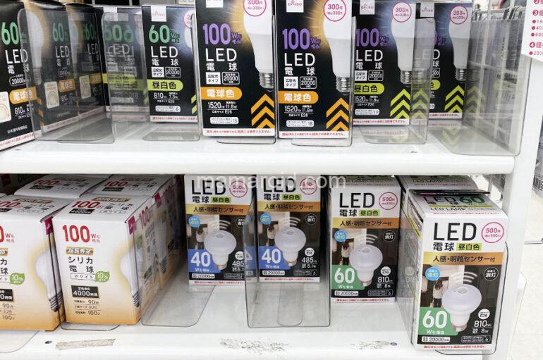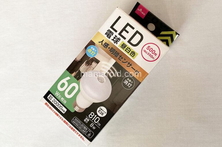 Amazonやアイリスオーヤマでの人感センサーつき電球は1,000円以上の価格。ダイソーは最安値の部類に入りそう。下向きに取り付けられる電球タイプがある方は、ぜひチェックしてみてください。