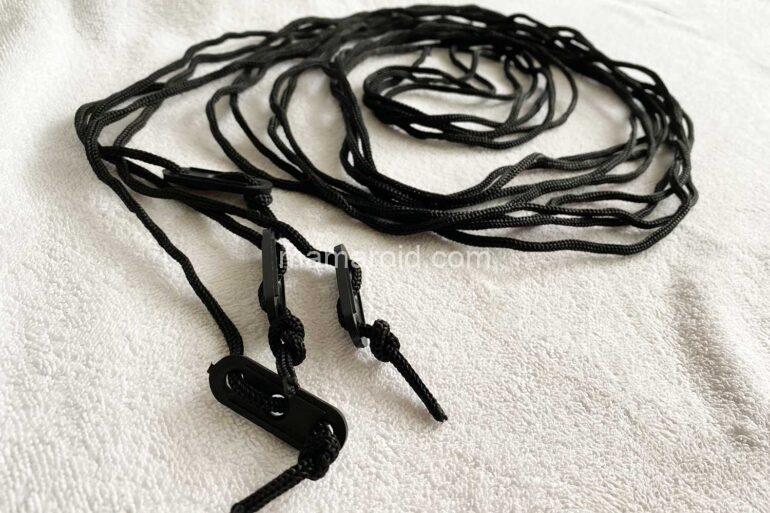 「自在ロープ」ってなんぞや?と思った人も多いかと思いますが、このロープの先端についているモノ。長さを自在に変えられる、つまり長さの調節がしやすく、しっかり固定できるよういなっています。