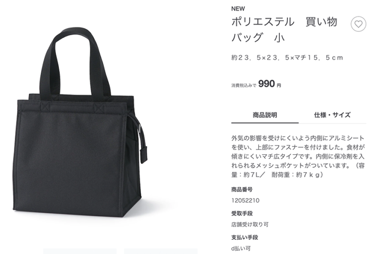 コロンとしていて、可愛らしいバッグ。お弁当入れにもちょうど良さげです。コンパクトだけどしっかり入るサイズの外気の影響を受けにくいバッグ(いわゆる保冷バッグ)をお探しなら、無印良品の新商品もチェックしてみてはいかがでしょうか。