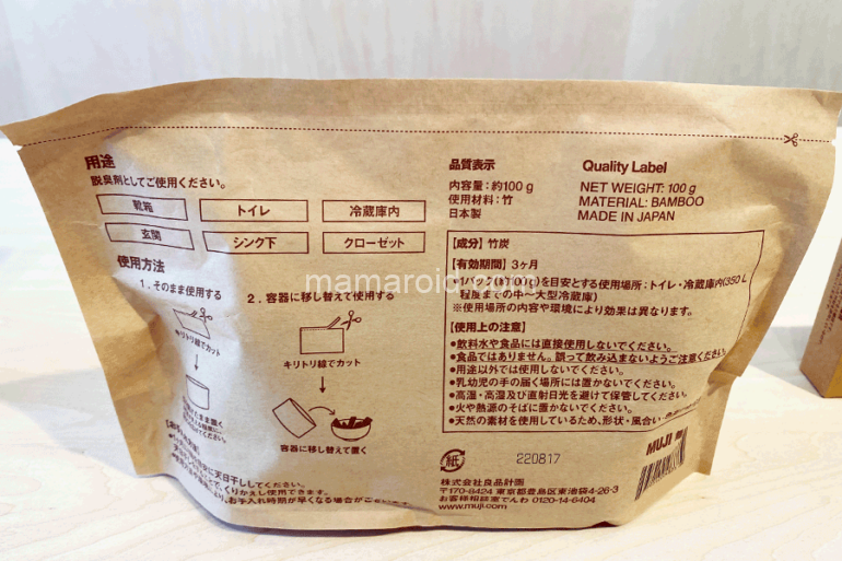 無印良品「繰り返し使える脱臭竹炭」の特徴は、そのまま使えるお手軽さ。