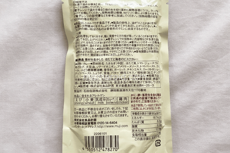 「素材を生かした ほたてと海老のビスクカレー」は1人前180g入りで490円。