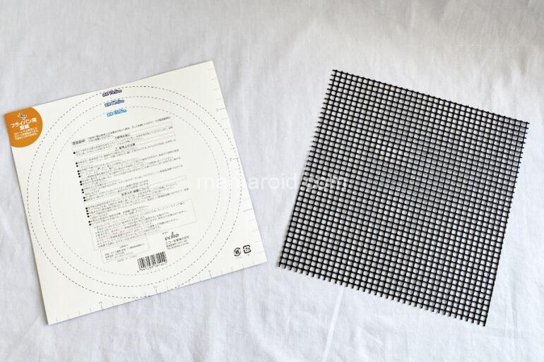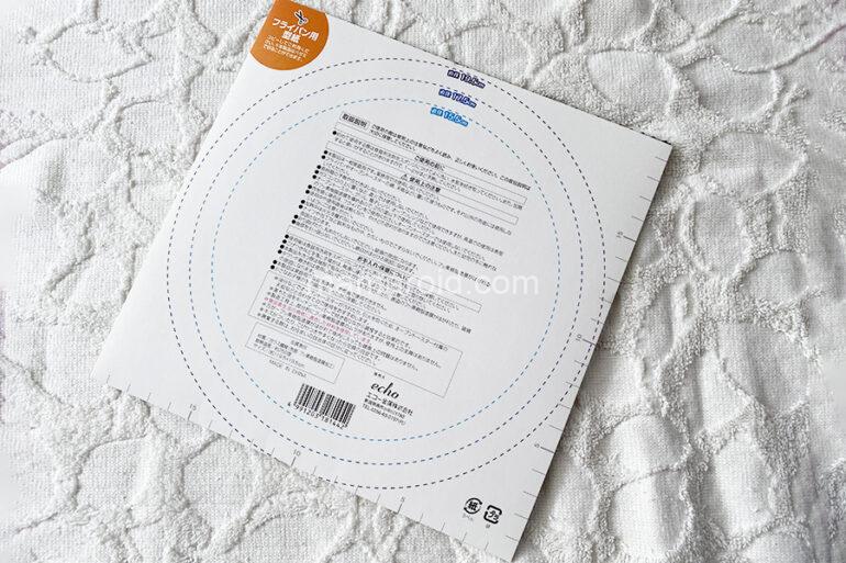 パッケージの裏側にはフライパンサイズに合わせてカットできるように、ガイド線がプリントされています。