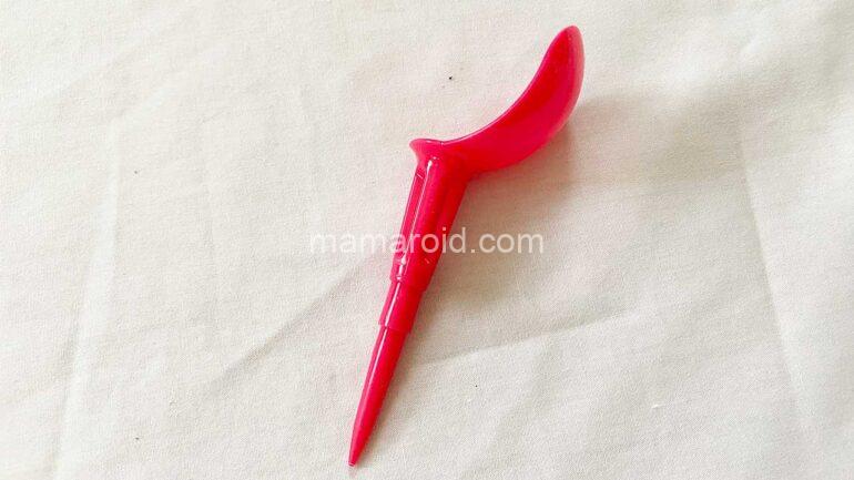 サイズは全長10cm。カップ部があるので、やや大きく感じます。ただし軽量設計で、重さはフツーのティーとさほど変わらず。