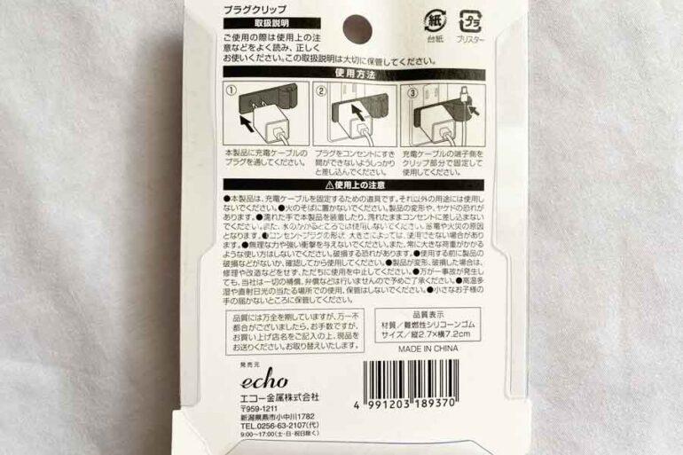 プラグクリップは110円。エコー金属(株)の商品です。